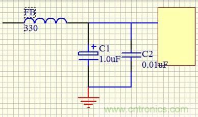 在輸入電源上,數(shù)字電路干擾是一個一個小尖峰,不能用大電容濾波,只能用小電容;濾波電容一大一小(小電容濾除高頻干擾,大電容濾除低頻干擾)一定要放在根部,不要放太遠(yuǎn),也不要放在電路板背面。