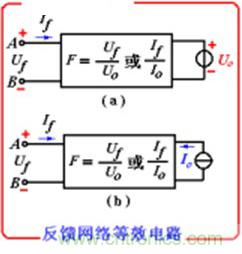 繪反饋網(wǎng)絡(luò)的輸入回路時,對電壓反饋,其輸入用恒壓源Uo代替基本放大電路;對電流反饋,用恒流源Io代替基本放大電路,如下圖所示。