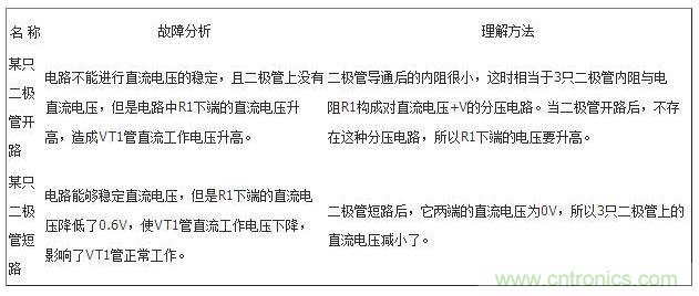 (2)二極管眾多的特性中只有導(dǎo)通后管壓降基本不變這一特性能夠最為合理地解釋這一電路的作用,所以依據(jù)這一點可以確定這一電路是為了穩(wěn)定電路中A點的直流工作電壓。