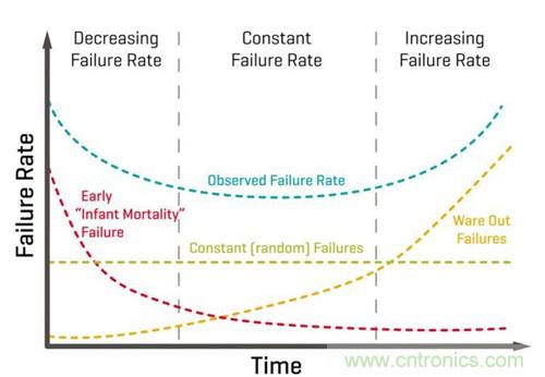 PSU的壽命有三個(gè)階段:“早期故障率”在第一階段很高,持續(xù)時(shí)間約24小時(shí)。裝運(yùn)前預(yù)燒可避免這些“早期故障率”故障