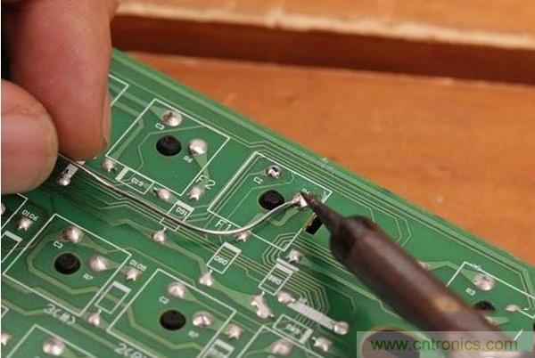 以上所說(shuō)其實(shí)都是電子元器件的問(wèn)題,當(dāng)然,既然PCB電路板作為元器件的落腳點(diǎn),那么電路板故障肯定也是存在的,最簡(jiǎn)單的例子就死鍍錫部位,因制作工藝原因,在PCB腐蝕過(guò)程中,有可能會(huì)出現(xiàn)斷線問(wèn)題。遇到這種情況,如果無(wú)法補(bǔ)線,那么只能用細(xì)銅絲飛線解決。