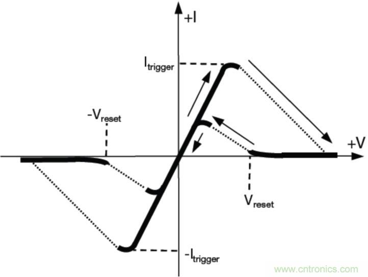 在限制過壓的過程中,受保護電路短暫暴露在高壓下,因而在切換到低壓保護打開狀態(tài)之前,TISP器件處在擊穿區(qū)域。TBU將保護后端電路,防止由于這種高電壓導致的高電流造成損壞。當轉移電流降低到臨界值以下時,TISP器件自動重置,以便恢復正常系統(tǒng)運行。