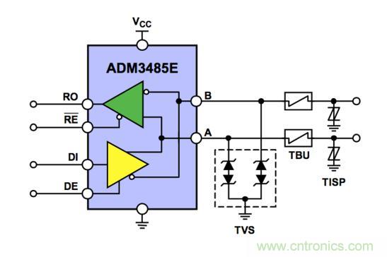 RS-485端口EMC方案相應的規(guī)范要求實際上就是保護電路設計需要達到的目標。為了達成這樣的目標,自有其設計原則: