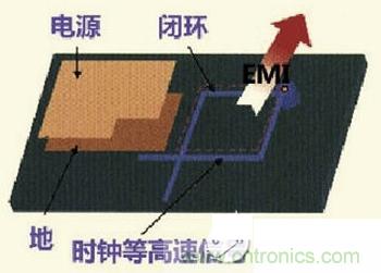 時鐘信號等高速信號網(wǎng)絡,在多層的PCB走線的時候一旦產(chǎn)生了開環(huán)的結(jié)果,將產(chǎn)生線形天線,增加EMI的輻射強度。