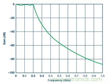 由于接收機(jī)IF濾波器用于抑制雜散和混疊信號(hào),因此阻帶滾降越快越好。但更快的滾降意味著要使用更高階器件。一般不推薦采用很高階的濾波器,原因如下:
