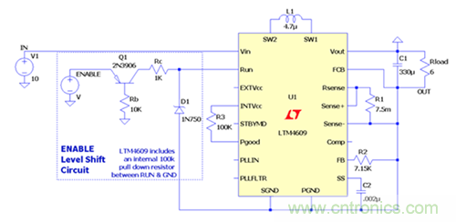 圖4.具有電平轉(zhuǎn)換使能電路的LTM4609