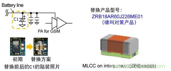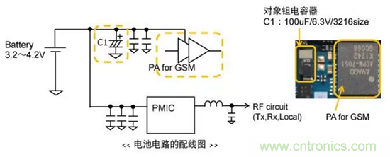 對(duì)連接在電池電路的GSM用PA電源線的Ta電容器的替換評(píng)估。