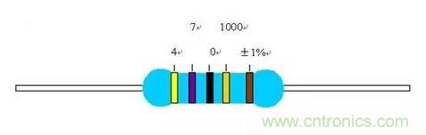 所以,黃色在第一環(huán)就是4,第二環(huán)紫色為7,第三環(huán)黑色是0,第四環(huán)就是乘積了10的3次方也就是1000,第五環(huán)是誤差了棕色為±1%。現(xiàn)在我們來計算阻值:470*1000=470K,然后誤差是±1%,所以阻值的范圍是在465.3K—— 474.7K之間,其阻值都是正常的。