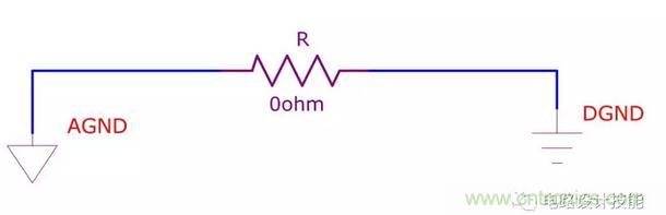 用于信號完整性的模擬地和數(shù)字地的單點(diǎn)連接 - 有人說0?跟沒有一樣,干嘛不直接連接上?想象一下如果你在電路原理圖里沒有這個(gè)0?的電阻,做PCB Layout的時(shí)候就可能忽略這個(gè)單點(diǎn)連接的原則,CAD軟件也會亂連在一起,達(dá)不到你單點(diǎn)連接的初衷。當(dāng)然單點(diǎn)連接的時(shí)候你也可以用磁珠,我個(gè)人的觀點(diǎn)其實(shí)連接點(diǎn)的位置選擇好的話,磁珠除了比電阻貴之外,沒有什么好處,實(shí)際的操作中你可以用比較小的封裝的0?電阻,比如0402、0201,焊接的時(shí)候直接用烙鐵將兩端搭接在一起就可以,連電阻也省了;