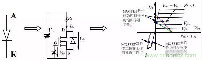 功率 MOSFET 在門級控制下的反向?qū)ǎ部捎靡浑娮璧刃?,該電阻與溫度有關(guān),溫度升高,該電阻變大;它還與門極驅(qū)動(dòng)電壓的大小有關(guān),驅(qū)動(dòng)電壓升高,該電阻變小。詳細(xì)的關(guān)系曲線可從制造商的手冊中獲得。此工作狀態(tài)稱為MOSFET 的同步整流工作,是低壓大電流輸出開關(guān)電源中非常重要的一種工作狀態(tài)。