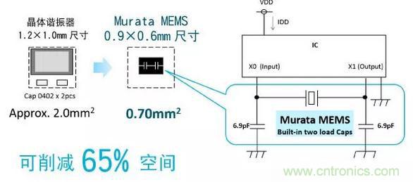 本產(chǎn)品是內(nèi)置了在振蕩電路中所需的負(fù)載電容量的超小型芯片尺寸封裝(CSP)。因此,可節(jié)省整體振蕩電路的空間,為最終的小型化做貢獻(xiàn)。此外,也可在空出來的空間中追加大電流或者其他功能。