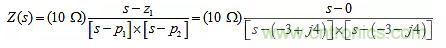 當(dāng)s=0時,其值為零;當(dāng)s=-3±j4時,它具有復(fù)共軛極點(diǎn)對??梢杂酶鶃肀磉_(dá)它,即: