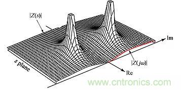 如果我們繪制|Z(s)|相對于s的幅度曲線,則可以直觀理解零點(diǎn)和極點(diǎn)的含義。所得到的曲線就好像在s平面上豎起的帳篷,在零點(diǎn)處接觸s平面,而在極點(diǎn)處其高度變?yōu)闊o限。