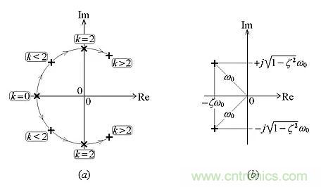 圖10:(a)作為k的函數(shù)的根軌跡(b)在阻尼響應(yīng)狀態(tài)下的極點(diǎn)對。