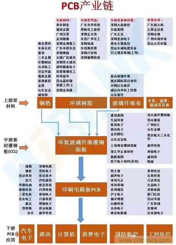 PCB的產(chǎn)業(yè)鏈從上至下依次為: