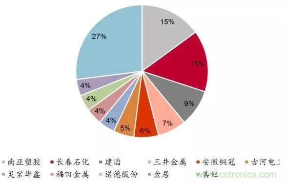 全球前十大電解銅箔生產(chǎn)企業(yè)產(chǎn)量占比