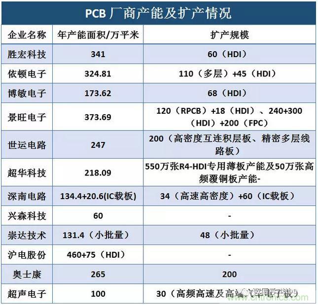 超聲電子:成立于1997年,高階HDI技術(shù)領(lǐng)先。產(chǎn)品包含雙面及多層印制電路板、液晶顯示器、超薄及特種覆銅板、超聲電子儀器等,是蘋(píng)果、博世、法雷奧等全球知名企業(yè)長(zhǎng)期供應(yīng)商。PCB為主要營(yíng)收來(lái)源,2017年?duì)I收占比53%。