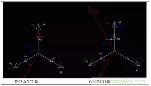 2、用相電壓矢量圖來識別Y/Δ 接法的聯(lián)接組別