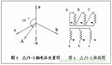 4、用相電壓矢量圖,識別△/Y接法的聯(lián)接組別