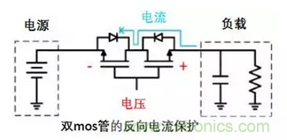 如下圖所示,這是使用2個MOS管串聯(lián)的方法。在MOS管關(guān)閉時,可以阻止從兩個方向上來的電流。 MOS管的壓降低于二極管解決方案,但這種方法的缺點是需要占用更多的電路板空間。