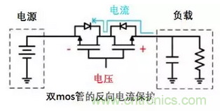 由于MOS管的內(nèi)阻很小,一些MOS管的 Rds(on)已經(jīng)能夠做到毫歐級,可以解決了基于二極管的反向電流保護(hù)方案中存在的壓降和功耗過大的問題。