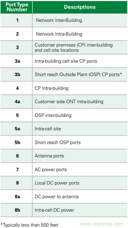 在美國,電信公司在網絡側安裝設備的電路保護(例如,安裝光纖網絡終端單元或ONT的附近機柜中)必須符合NEBS(網路設備建設系統(tǒng))設計指南,這反過來可能需要符合GR-1089第6期端口類型3浪涌。由于這些回路很短,端口類型可被指定為類型3a / 5a。每個供應商應界定其自身的防雷電要求。端口類型3是這類設備中的最嚴重情況。欲了解有關端口類型的更多信息,請參見表2。