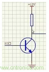 當(dāng)基極為高電平時(shí),三極管導(dǎo)通,右側(cè)的導(dǎo)線接地為低電平,當(dāng)基極為低電平時(shí),三極管截止,輸出高電平。