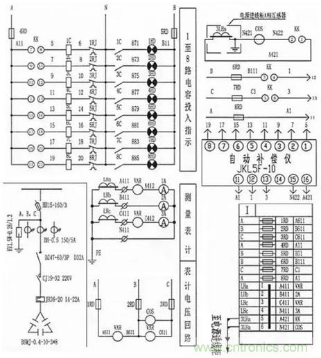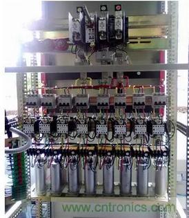 合上刀熔開關(guān)和斷路器,無功功率補償控制器根據(jù)進線柜電壓和電流的相位差輸出控制信號,控制交流接觸器閉合和斷開,從而控制電容器投入和退出。