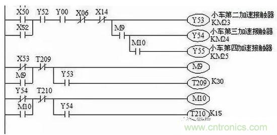無論多么復(fù)雜的梯形圖,都是由一些基本單元構(gòu)成的。按主電路的構(gòu)成情況,利用逆讀溯源法,把梯形圖和指令語句表分解成與主電路的用電器(如電動機(jī))相對應(yīng)的幾個基本單元,然后一個環(huán)節(jié)、一個環(huán)節(jié)地分析,最后再利用順讀跟蹤法把各環(huán)節(jié)串起來。