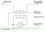 射頻電流探頭是一個初級類型為插入式的射頻電流變壓器。即,當(dāng)我們將探頭夾在待測電流流經(jīng)的導(dǎo)線或者電纜上的時候,這些導(dǎo)體就構(gòu)成了變壓器的初級線圈。這種探頭的夾合特性使得它很容易被安置在任意導(dǎo)體或者電纜的四周。其本質(zhì)就是一個寬帶的高頻變壓器。利用電流探頭,可以在不對電路造成物理影響的情況下,實現(xiàn)對電纜上的高頻電流的測量。既然打算將電流探頭夾合在導(dǎo)線上,那么如圖2 所示的變壓器初級實際上就是待測共模電流流過的電導(dǎo)體本身。另外,因為共模電流被認(rèn)為是流過導(dǎo)體后,再經(jīng)過回流導(dǎo)體(例如:框架,共地面或者接地)返回到電源的,所以這個變壓器的初級線圈通常被認(rèn)為只有一匝。在某些電流探頭的模型中,次級輸出端內(nèi)部接的是阻性負載,這樣可以在一個很寬的頻率范圍內(nèi)提供非常穩(wěn)定的轉(zhuǎn)移阻抗。