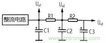 π 型 RC 濾波電路原理如下: