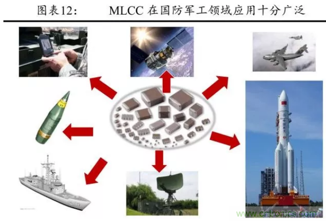 MLCC性能優(yōu)異,被廣泛地應(yīng)用于衛(wèi)星、飛船、火箭、雷達(dá)、 導(dǎo)彈等武器裝備。