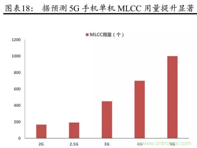 另根據(jù) Kemet 數(shù)據(jù),iPhoneX 單部手機對 MLCC需求量超過 1000 只,而 iPhone 6S 對 MLCC需求量為 500 只左右。隨著 OPPO、VIVO、小米、華為等逐步專注于生產(chǎn)中高端機型,有望推動上游 MLCC 需求獲得持續(xù)較快的增長。