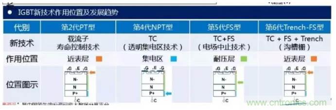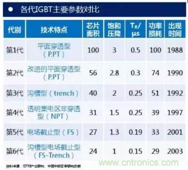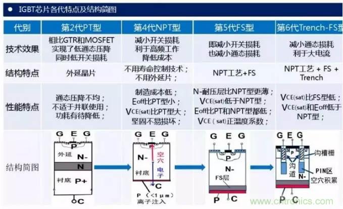 1985年前后美國GE成功試制工業(yè)樣品(可惜后來放棄)。自此以后, IGBT主要經(jīng)歷了6代技術(shù)及工藝改進(jìn)。