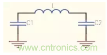 若經(jīng)過嚴格的物理理論推導(dǎo)和近似分析,可以把過孔的等效電路模型為一個電感兩端各串聯(lián)一個接地電容,如圖1所示。