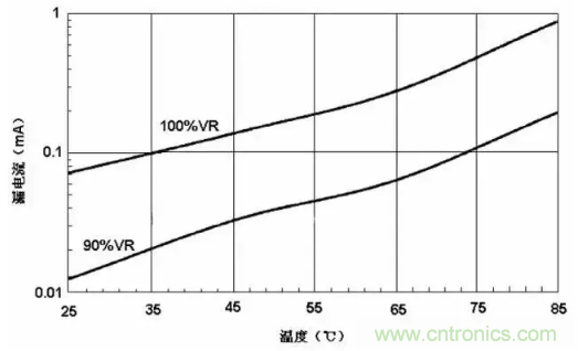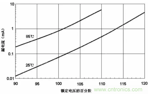 應(yīng)用電壓過高和溫度過高都會(huì)引起漏電流的增加。