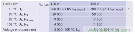 溫度、電壓、紋波電流共同作用對壽命的影響。以某電子鎮(zhèn)流器用鋁電解電容器為例。在不同的電壓與溫度條件下的鋁電解電容器壽命不同。