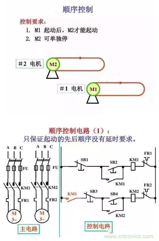【導(dǎo)讀】在電氣控制電路里,順序控制也是應(yīng)用很廣泛的電氣控制電路,經(jīng)常被用在傳送帶,工業(yè)流水線,機(jī)械手等控制當(dāng)中,關(guān)于順序控制電路,簡單一句話就說明原理:一個接一個的啟動,全部停止或者一個接一個的停止,今天我們就重點來看一下順序控制電路和具體實例。