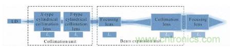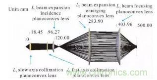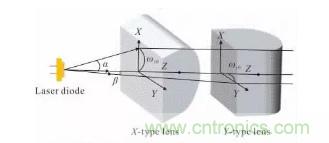圖3 柱面透鏡對LD光束準(zhǔn)直示意圖