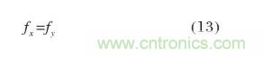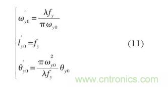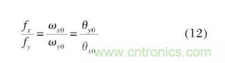 由此可知對于柱面準(zhǔn)直透鏡,焦距f越大,準(zhǔn)直后的出射光束束腰半徑越大且束散角越小。為實(shí)現(xiàn)光束的進(jìn)一步整形,應(yīng)使得快軸、慢軸方向的光束在準(zhǔn)直后束腰半徑、束散角盡可能相近,由公式(10)、(11)可得X、Y型柱面鏡的焦距關(guān)系需滿足: