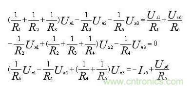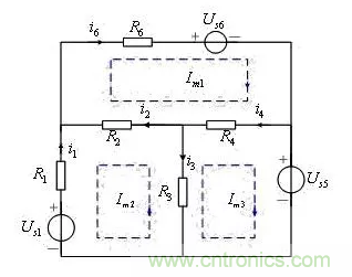 即為該電路的網(wǎng)孔方程,顯然,由此三個(gè)方程,可求解網(wǎng)孔電流。