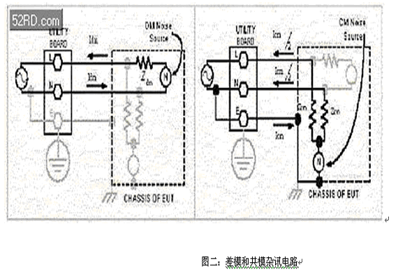 “傳導(dǎo)式EMI”可以分成兩類:差模(Differential mode;DM)和共模(Common mode;CM)。差模也稱作“對稱模式(symmetric mode)”或“正常模式(normal mode)”;而共模也稱作“不對稱模式(asymmetric mode)”或“接地泄漏模式(ground leakage mode)”。