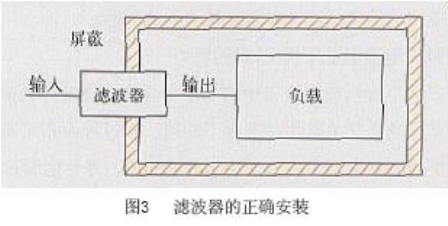 b.濾波器的輸入和輸出線必須分開,防止輸入端與輸出端線路耦合,降低濾波特性,通常利用隔板或底盤來固定濾波器。若不能實(shí)施隔離方法,則采用屏蔽引線。