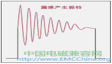由于變壓器的初級(jí)有漏感,當(dāng)電源開關(guān)管V1由飽和導(dǎo)通到截止關(guān)斷時(shí)會(huì)產(chǎn)生反電動(dòng)勢,反電動(dòng)勢又會(huì)對(duì)變壓器初級(jí)線圈的分布電容進(jìn)行充放電,從而產(chǎn)生阻尼振蕩,即產(chǎn)生振鈴,如圖4所示。變壓器初級(jí)漏感產(chǎn)生反電動(dòng)勢的電壓幅度一般都很高,其能量也很大,如不采取保護(hù)措施,反電動(dòng)勢一般都會(huì)把電源開關(guān)管擊穿,同時(shí)反電動(dòng)勢產(chǎn)生的阻尼振蕩還會(huì)產(chǎn)生很強(qiáng)的電磁輻射,不但對(duì)機(jī)器本身造成嚴(yán)重干擾,對(duì)機(jī)器周邊環(huán)境也會(huì)產(chǎn)生嚴(yán)重的電磁干擾。