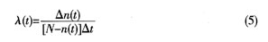 失效密度用來(lái)反映產(chǎn)品在全部工作時(shí)間失效的分布情況。產(chǎn)品工作到t時(shí)刻后,在單位時(shí)間內(nèi)失效的概率稱為失效率λ(t),可用下式表示: