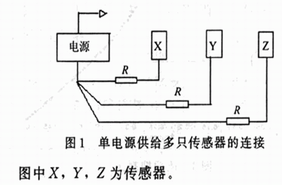 當(dāng)使用單電源供給多只傳感器時(shí),其連接方法如圖1所示,以盡量減少接地電阻引進(jìn)的干擾,若供電電源的壓降必須減到最小,則電源高端導(dǎo)線也可按相似的方法接線。