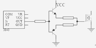 因此得出結論是,單靠提高開關速度來提高DC-DC轉換器效率是不可取的。于是,如何選擇合適的驅動電路參數、不斷地優(yōu)化驅動電路的設計,在提高DC-DC轉換器的EMC性能的同時又保證總效率等其他參數指標不受到大的影響,是近年來發(fā)展的一個新方向。例如,在驅動電路中保留驅動電阻的同時加入推挽電路以代替二極管,這樣就可以方便地分別調節(jié)控制開和關的速度,再權衡EMC性能和總效率指標的關系,以達到最理想的效果。如圖3所示。