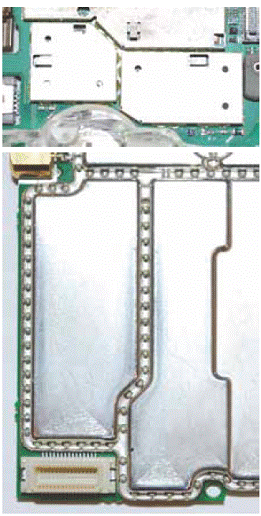 如果PCB板上有多個(gè)區(qū)域需要屏蔽,有的工程師會(huì)采用框蓋技術(shù)。雖然這種技術(shù)能將每個(gè)腔體與外界干擾屏蔽開來,但外框與蓋子的內(nèi)部開孔對(duì)于干擾非常敏感。熱成型多腔屏蔽體能讓各個(gè)腔體對(duì)外界干擾的屏蔽效果保持一致。實(shí)際上,用于安裝這些屏蔽體的球形焊料有兩厘米的接觸點(diǎn),這確保了產(chǎn)品的性能能高達(dá)12GHz,并且球形提供了兩層的接觸,有一定的冗余。另一方面,框蓋屏蔽體通過凹陷保證接觸,這一般需要5毫米的空間。而且,蓋子一般是剛性的,移動(dòng)不靈活,而且蓋子的翻轉(zhuǎn)通常會(huì)破壞電氣接觸,因此框蓋技術(shù)并不能提供與熱成型屏蔽體相同的可靠性能。