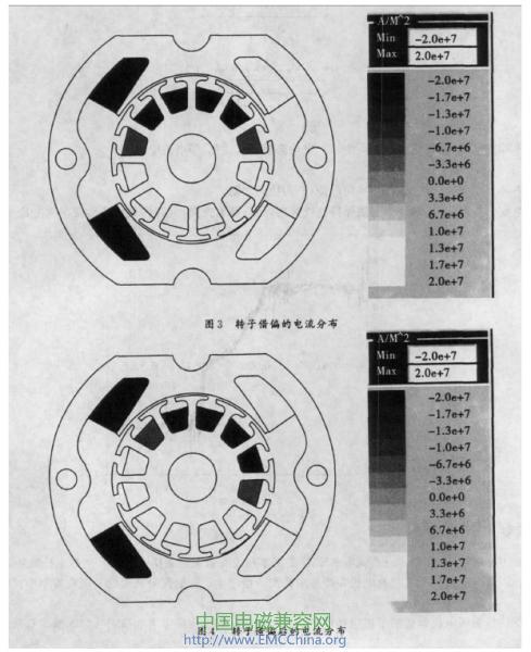 圖3及圖4分別表示了轉(zhuǎn)子在借偏前后的電流分布: