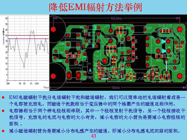 各種干擾脈沖波形的頻譜。輻射和干擾的頻率有關(guān),頻率一般都是指正弦波,這樣比較好理解,對(duì)于方波或正弦波的波形,一般我們都可以把它看成是無(wú)窮多個(gè)上升率不同的波形進(jìn)行疊加,也就是用基數(shù)展開(kāi),這是數(shù)學(xué)表達(dá)方式,比較正確是用不同的上升率,不同的波形進(jìn)行疊加,但上升率不好理解,一般都是用正旋波表示。這里面波種不同的波形,它產(chǎn)生的干擾不一樣。這種的頻譜是最寬的,這種是高新的,接近于正弦波。120dB的時(shí)候是1v,126dB就是2v,大家知道dB是什么嗎?它一般用來(lái)表示放大倍數(shù),就是輸出電壓與輸入電壓之比,取數(shù)值大于20。為什么用這個(gè)倍數(shù)來(lái)比?用倍數(shù)比相當(dāng)于把視角范圍縮小,讓你好看,如果從線(xiàn)性來(lái)看,一個(gè)毫伏一直到兩伏就沖到天上去了,不好看。用對(duì)數(shù)坐標(biāo)表示,越往下越壓縮,前面是壓縮比較小,這邊也是。這里變成10,變成了100,變成1000,這是在電工里面用量表示,用倍數(shù)表示,每6dB就差1倍,大家記住。這里是60÷20=3,是3個(gè)據(jù)波,這里是1000微伏,120是正極,1V+6dB=2v。到測(cè)試所去測(cè)試給一個(gè)曲線(xiàn),很多人問(wèn)我dB是什么意思?dB就是一個(gè)坐標(biāo),后面會(huì)加一個(gè)單位,一個(gè)毫伏0dB就是一個(gè)毫伏。功率不是20倍表示了,而是用10倍表示,每3dB差一倍功率,電壓就是每6個(gè)dB差一倍。